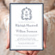 Invitation Mariage blanc Monogram Crest bleu de la marine cla