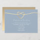 Simple, minimaliste, moderne, élégant faire-part de mariage bleu poussiéreux avec coeur romantique de corde dorée.