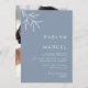 Cette faire-part de mariage bleue poussiéreuse et classique est parfaite pour un mariage rustique. Le design présente des herbes sauvages aquarelles dans un arrière - plan bleu poussiéreux.