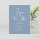 Vous cherchez une façon simple et moderne d'annoncer votre grand jour ? Notre invitation minimaliste Save the Date est parfaite pour présenter vos invités à votre jour de mariage. Avec un script et une typographie classique sur un arrière - plan bleu poussiéreux qui peut être personnalisé, l'arrière-plan comprend également un code QR pour les invités à scanner et visiter votre site Web pour plus de détails sur l'événement. Ce design élégant et pratique vous impressionnera et fera savoir à vos proches que vous vous marierez.