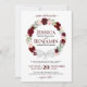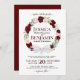 Ces belles invitations de mariage présentent un design rustique simple avec une couronne de roses d'aquarelle peints à la main dans les tons bordeaux, rose roux, corail et rouge. Le texte présente une typographie élégante avec une utilisation soignée de la calligraphie de script. Le dos est d'une couleur rouge bordeaux marbrée profonde avec un bouquet de roses et de verdure. Simple et élégant, ces invitations sont une façon merveilleuse d'invitation vos amis et votre famille pour partager votre joie mariage.