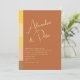 Elégant, moderne, minimaliste, tendance, jaune contemporain brûlé orange et terre cuite faire-part de mariage avec simple écriture manuscrite et monogramme retour.
