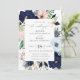 Les fleurs et le feuillage d'aquarelle aux nuances à la mode de la marine, rougissent, bleu et taupe poussiéreux avec des étoiles de mer et des accents de coquillage, faire-part de mariage élégant. La carte comporte le support solide de couleur de bleu marine.