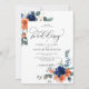 Elégant faire-part de mariage d'aquarelle fleurie. Beau faire-part de mariage moderne fleuri avec des fleurs peintes à la main en bleu marine et orange brûlé avec élégant script de calligraphie. Vous pouvez personnaliser le libellé, le style de police, la couleur et la taille devant et derrière l'invitation. N'hésitez pas à me contacter pour les articles correspondants.