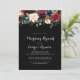 Cette invitation à brunch botanique noir rustique mariage est parfaite pour une famille simple et des amis jour après le brunch du mariage. Le design est composé de fleurs bordeaux, rouges, navy, bleues et rousses rayonnantes et gracieuses peintes à la main dans un arrière - plan noir, inspirant beauté naturelle.