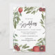 Une gigantesque grenade et des feuilles faire-part de mariage de la célèbre grenade est la base de ce faire-part de mariage moderne bordeaux et vert. vos informations sont facilement échangées pour cela sur invitation. L'invitation est indépendante et fait partie d'une suite Mariage de Just Fine Designs.