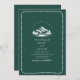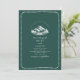Illustration de montagnes avec arbres à feuillage persistant et canoë sur le lac. La bordure est dessinée à la main et la conception de gribouillis. L'Arrière - plan est vert émeraude.