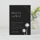 Invitation photo Mariage contemporaine Coastal Chic Minimaliste. La typographie moderne blanche et les accents de palmier sur les arrière - plans noirs.