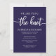 Carton d'invitation de mariage chic de nuit avec calligraphie à l'encre bleue