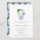 Fleurs classiques bleues et blanches dans un vase en pot de gingembre pour ce modèle d'invitation. J'ai configuré le modèle pour une soirée de fiançailles, mais tous les champs de texte sont personnalisables selon vos besoins.