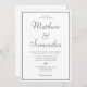 Invitation de mariage classique, formelle et élégante, avec un design traditionnel avec une bordure et un formulaire texte formel avec des noms de calligraphie script. Tout le texte est éditable et imprimé dans une couleur gris foncé qui peut bien fonctionner avec les différents types de papier disponibles pour une finition de luxe. Le dos peut être laissé blanc ou customisé avec du texte ou une photo en cliquant sur le bouton pour modifier la conception. Des produits de suite invitations correspondants sont disponibles.