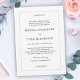 Faire-part de mariage de bon goût à la simplicité classique, ce design présente une fine bordure argentée entourant votre texte et agrémentée de fioritures de calligraphie. Vous pouvez ajouter, supprimer ou ajuster le placement du texte en fonction de vos besoins. L'arrière - plan blanc toujours populaire ajoute à la simplicité propre de ce design. Que vous ayez un mariage d'église ou un simple mariage laïc, ce design est toujours un choix approprié.