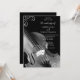 Invitation vos invités à vos noces à venir avec l'élégante Faire-part de mariage violon classique noir et blanc. Cette élégante invitation de mariage à thème musical personnalisé présente une photo en noir et blanc d'un violon avec un arrière - plan noir et des tourbillons blancs aux angles.