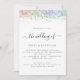 Mariage code Qr Glitter Glam Rainbow. Une bordure de faux glitter multicolore est présente de chaque côté, et Le Mariage De est écrit dans un style d'écriture manuscrite avec des fioritures. Personnalisez facilement le texte avec vos propres détails. Remplacez l'exemple de code QR au verso par le vôtre menant à la page de réponse de votre site web de mariage, ce qui permet à vos invités de répondre et de voir plus de détails facilement.