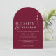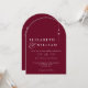 Cette invitation de mariage minimaliste à monogramme burgundy peut être personnalisée avec vos informations en typographie moderne et le code QR de l'adresse de votre site web de mariage au verso. Conçue par Thisisnotme©