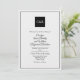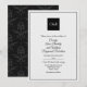 Elégant, toutes saisons, faire-part de mariage en noir et blanc, avec un look aquarelle de texture papier. Les monogrammes blancs de mariée et de mariée décorent un carré noir, en haut de l'invitation et un cadre noir mince entoure le côté avant. L'arrière de l'invitation est fait en noir sur motif damassé floral noir. Personnalisez tous les champs de texte pour votre journée spéciale. Des produits mariages correspondants sont disponibles.