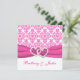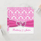 Cette jolie invitation mariage damassé rose et blanc a un ruban d'IMPRIMANTE rose chaud et une paire de coeurs de bijoux en diamant avec griffes imprimées. Il conviendra parfaitement à une mariage romantique à thème rose et blanc. Le texte et le papier sont tous personnalisables. Si vous avez besoin d'autres articles correspondants, veuillez envoyer votre demande par courriel à niteowlstudio@gmail.com.