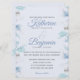 Ambiance douce et aérée bleu poussiéreux et turquoise vert botanique feuilles invitation à mariage floral. Personnalisez avec vos propres détails.