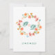 Cette faire-part de mariage présente une délicate couronne florale aux fleurs d'aquarelle dans les tons orange, rose et bleu, formant un cercle élégant sur un arrière - plan blanc. Le design dégage une atmosphère charmante et romantique, parfaite pour une fête mariage.