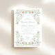 Elégante invitation de mariage avec des illustrations d'aquarelle dessinées à la main de bordures vintages ornées de verdure et de vignes délicates avec de charmants oiseaux chanteurs jaunes et bleus perchés à l'intérieur, créant un design fantaisiste mais raffiné. Les noms de la mariée et du marié sont dans le texte vert sage classique et les détails de l'événement sont en lettres vert sage simple. Parfait pour les couples qui adoptent l'esthétique populaire des petits-millénaires, alliant l'amour d'une époque révolue à une touche rafraîchissante et contemporaine.