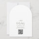 Ce faire-part de mariage d'arche à code QR vert feuille minimaliste est parfait pour un mariage boho. Le design se compose d'une simple silhouette de feuille de verdure en vert d'olivier, au style bohème minimaliste de montagne. Économisez du papier en incluant un code QR pour votre invité afin d'afficher les détails, RSVP ou les deux.