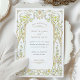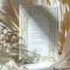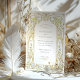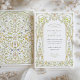 Cette faire-part de mariage luxueuse est ornée d'une bordure botanique raffinée, de vignes dorées et de fleurs d'aquarelles luxuriantes. Avec un agencement symétrique et des défilés exquis, le design s'inspire de l'éclairage européen classique et du décor de palais ancien. Des marguerites roses, des cloches bleues et des fleurs sauvages appétissants fleurissent le long du cadre, mis en valeur par des accents dorés doux et d'élégantes courbes feuillues. La mise en page avant est centrée sur la typographie intemporelle avec un côté romantique, rehaussé par une touche monogrammée de chaque côté. Au contraire, un design opulent à motifs entiers reflète une fresque au plafond ou une tapisserie historique, élevant la présentation générale avec symétrie ornementale et élégance florale. Parfait pour les mariages, les jardiniers ou les couples aux styles vintages, ce design évoque l'élégance et l'art avec tous les détails.