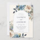 Cet élégant faire-part de mariage floral aquarelle présente un cadre en arc d'argent faux et une police calligraphique. Les fleurs d'aquarelle peintes à la main dans des couleurs rustiques bleu marine et crème sont parfaites pour un mariage d'automne ou d'hiver. Éditez cet invitation vous-même en utilisant les outils de modèle en ligne de Zazzle. Les dessins sont des illustrations/graphiques à papier plat - PAS VRAIMENT FOIL.