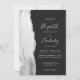 Le bord gauche de cette élégante faire-part de mariage moderne est orné d'une bordure en aquarelle grise et blanche ornée d'une parties scintillant en faux argent. Le texte personnalisable combine écriture manuscrite, copperplate et polices italiques gris argenté sur un arrière - plan noir ardoise. L'envers présente une conception d'agate correspondante.