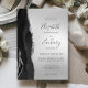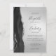 Le bord gauche de cette élégante faire-part de mariage moderne est orné d'une bordure en aquarelle noire et d'une parties scintillant en faux argent. Le texte personnalisable combine écriture manuscrite, copperplate et polices italiques en gris fusain sur un arrière - plan faux feuille argent. L'envers présente un design d'agate noir et argent assorti.