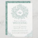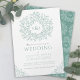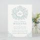 Invitations de mariage d'art botanique à feuilles de feuillage grises. Un design de feuille simple encerclant votre propre design d'initiales monographiques. Dans de jolis tons verts et gris sur le blanc. Autres couleurs et objets correspondants disponibles. © Dessin et dessin de la feuille d'origine par Sarah Trett pour www.mylittleedenweddings.com sur zazzle.