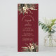Bouquets aquarelle fleuris avec rinse sépia, posés sur une toile rouge rustique, finie par une élégante calligraphie en ivoire... mettre en valeur le nom de la mariée et du marié, avec tous les autres détails de l'événement. Un design rustique chic adapté aux thèmes mariages de automne décontractés et plus formels.