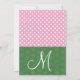 Ce design Mariage Polka Dot rose et blanc constitue un choix élégant pour votre faire-part de mariage. Ajoutez votre monogramme sur le devant, et personnalisez avec votre texte sur le dos. Tout le texte est personnalisable. Vous pouvez expérimenter différents types de papier en cliquant sur l'onglet "Options d'invitation" dans le coin supérieur droit. Je vous recommande le papier métallique dans la glace qui donne à votre invitation d'anniversaire un éclat et un éclat festifs. Joli !