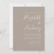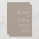 Ce faire-part de mariage moderne simple présente du texte blanc sur un arrière - plan taupe. Ajoutez les noms de la mariée et du marié en calligraphie stylisée et les détails en police sans serif. L'envers est solide taupe.