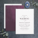 Branché, élégant et moderne, ce design mariage de typographie simple et minimaliste présente "Le Mariage de" dans la calligraphie moderne et le texte Serif comme principale caractéristique de design, et est basé sur notre invitation de douche nuptiale à succès. L'arrière de la carte présente une texture prune violette. Contacter le concepteur pour les produits correspondants. Merci tellement pour soutenir notre petite entreprise, nous l'apprécions vraiment! Nous sommes si heureux que vous aimiez ce design autant que nous, et aimeriez que vous soyez invitation de faire partie de notre nouveau groupe Facebook privé Mariage Conseils de planification pour les épouses occupées. Rejoignez pour recevoir les dernières nouveautés sur les ventes, les nouvelles versions et plus encore! https://www.facebook.com/groups/622298402544171 Copyright Anastasia Surridge pour Invitations élégants, tous droits réservés.