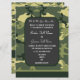 motif moderne de chasse au camouflage de l'armée verte, invitation de mariage formelle, personnalisation facile des noms de mariées et de mariées aux modèles textuels pour créer une invitation personnalisée unique pour vos spéciales de camo stylisé, de séduction à thème ou masculin pour les occasions spéciales et les célébrations. Fait partie d'une suite de jeux de mariages correspondante.