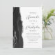 Le bord gauche de cette élégante faire-part de mariage moderne est orné d'une bordure en aquarelle noire et d'une parties scintillant en faux argent. Le texte personnalisable combine le script gris charbon et les polices sans serif sur un arrière - plan blanc. L'envers offre de l'espace pour les détails du mariage, ainsi qu'un code QR que les clients peuvent scanner pour visiter votre site Web et RSVP, ce qui permet d'économiser le coût d'impression et d'envoi de cartes RSVP séparées.
