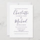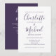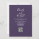Doté de noms de style signature, cet élégant faire-part de mariage violet peut être personnalisé avec toutes vos informations spéciales de mariage sur le devant et vos détails de site Web mariage et le code QR au verso. Conçu par Thisisnotme©