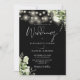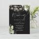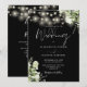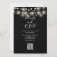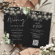 Cette élégante faire-part de mariage en noir et blanc, avec de jolies lampes à cordes et une verdure fleurie, peut être personnalisée avec vos informations en typographie chic avec les détails de votre site web mariage et votre code QR au verso. Conçu par Thisisnotme©