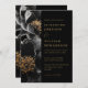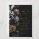 Cet élégant faire-part de mariage floral noir et or peut être personnalisé avec vos informations dans la typographie moderne et les détails de votre site mariage sur l'inverse. Conçu par Thisisnotme©