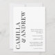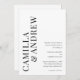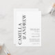 Un Faire-part de mariage de code QR moderne typographique noir et blanc avec de grands noms de couples et des détails sur le devant. L'arrière est doté d'un code QR avec des détails supplémentaires pour les clients, ce qui en fait une option abordable.