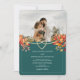 Annoncez votre mariage d’automne avec cette invitation photo moderne qui comprend un riche feuillage turquoise et orange, un coeur de cordes d’or et un espace pour la photo de votre couple préféré. Le dos comprend un code QR coordonné et des détails RSVP, alliant élégance rustique et fonctionnalité. Un choix étonnant pour les mariages de automne avec un thème boho ou romantique.