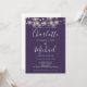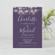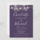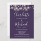 Doté de jolies lampes à cordes et de noms de style signature, cet élégant faire-part de mariage violet peut être personnalisé avec toutes vos informations spéciales sur le jour de mariage sur le devant, les détails de votre site Web mariage, et votre code QR au verso. Conçu par Thisisnotme©