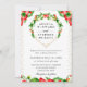 Superbe aquarelle Fraises et fleurs blanches conception de cadre coeur fleuri avec parties scintillant d'or confetti et rayures motif