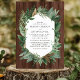 Cette faire-part de mariage rustique est ornée d'une luxuriante couronne de feuilles verts dressée contre un arrière - plan chaleureux en bois. L'élégante police serif dans le cadre central blanc cassé ajoute une touche de sophistication, ce qui rend ce design parfait pour un mariage d'inspiration nature. Les tons terreux et les éléments organiques créent une atmosphère sereine et accueillante, idéale pour les couples qui aiment la beauté de l'extérieur.