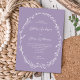Cette belle faire-part de mariage rustique dispose d'un arrière - plan Lavender Purple avec une couronne fleur sauvage blanche dessinée à la main et une élégante typographie. C'est un design parfait pour un mariage rustique mais élégant ! Voir la collection pour plus d'éléments.