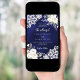 Pour une mariage élégante et romantique. Un bleu marine, un arrière - plan de couleur irrégulière décoré de fleurs blanches, de rose et de dentelle blanche. Personnalisez et ajoutez vos noms et détails.