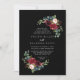 Ce faire-part de mariage botanique noir rustique en diamant est parfait pour un mariage classique. Le design est composé de fleurs bordeaux, rouges, navy, bleues et rousses rayonnantes et gracieuses peintes à la main dans un arrière - plan noir, inspirant beauté naturelle.