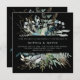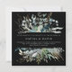 Ces invitations de mariage botaniques branchées sont faites de feuillage vert, bleu et gris d'aquarelle et de feuilles d'eucalyptus aux accents faux or sur un arrière - plan noir. Vos initiales vont à l'arrière.