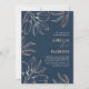 Invitation Mariage de feuillage d'or bleu et Rose moderne