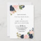 Cette superbe faire-part de mariage à fleurs d'automne conviendra parfaitement à un mariage tropical. Le design dépeint des fleurs fantaisistes de couleur rose dessinée à la main, bleu foncé et bleu marine, inspirant élégance, classe et beauté naturelle.
